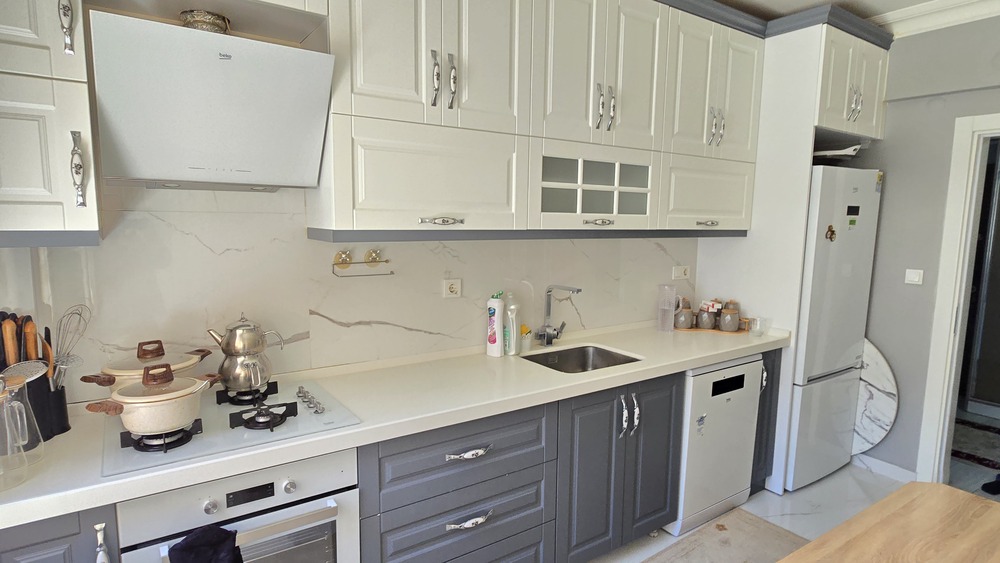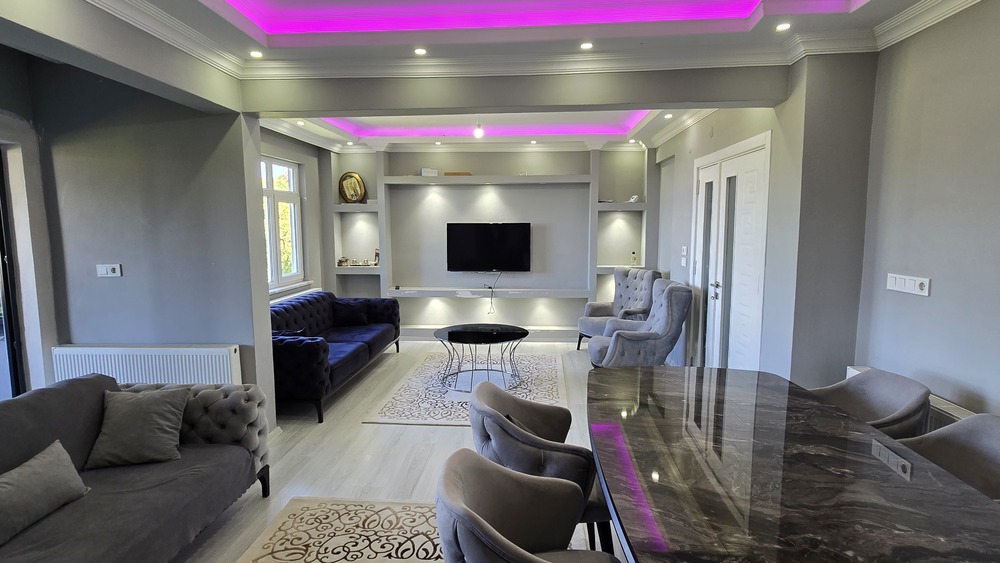 Tavanlar kartonpiyer ve renkli aydınlatmalarla donatılmıştır. Mutfak dolapları sıfırdır. Amerikan kapı ve laminat, çelik kapı vardır.