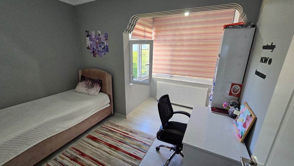 Dairemiz 165 m2 net kullanım alanına sahiptir. Yatak odasıyla salonu aynı büyüklüktedir. Odaları geniş ve ferahtır. İçerisi yeniden dizayn edilmiş olup daha kullanışlı ve lüks bir daire haline getirilmiştir.