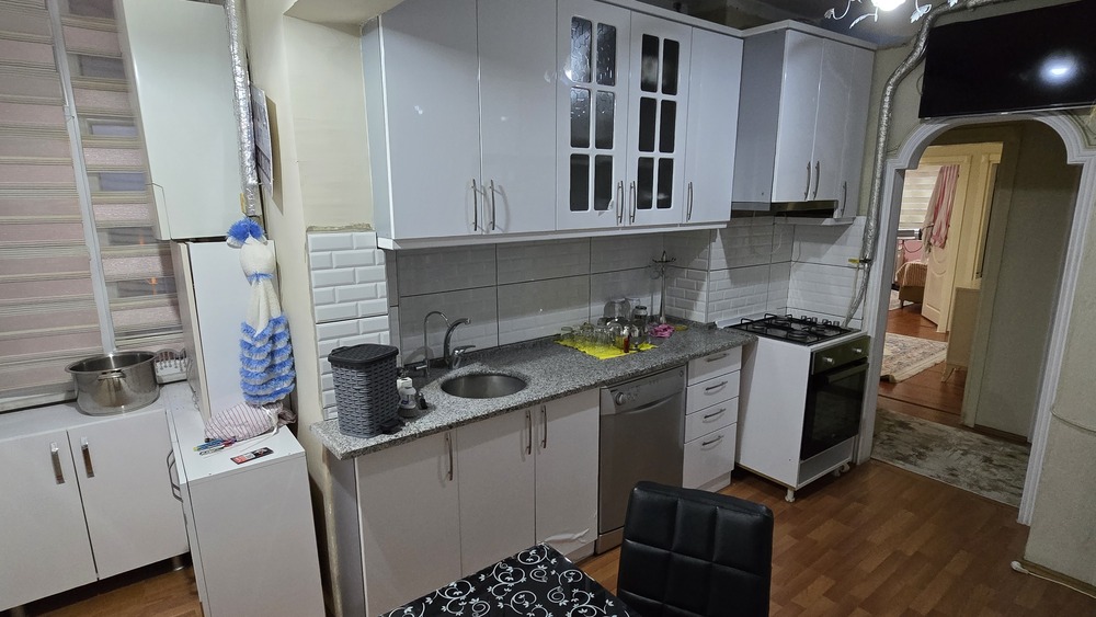 Mutfak dolapları kullanılabilir iyi durumdadır.Balkon pvc ile iç kullanım alanına dahil edilmiştir.Banyo ve tuvalet yeni yaptırılmıştır.Duşakabin ve banyo dolabı vardır.