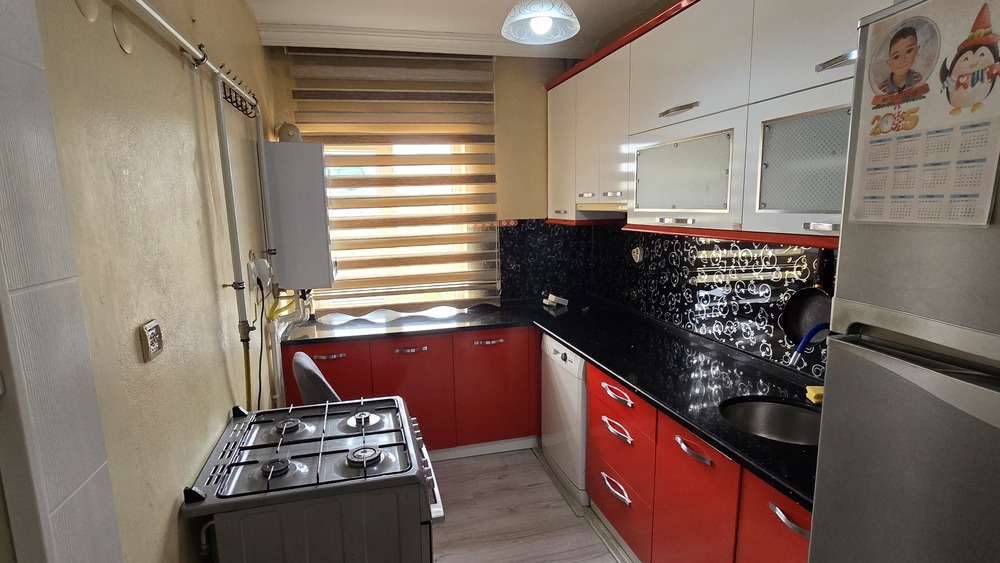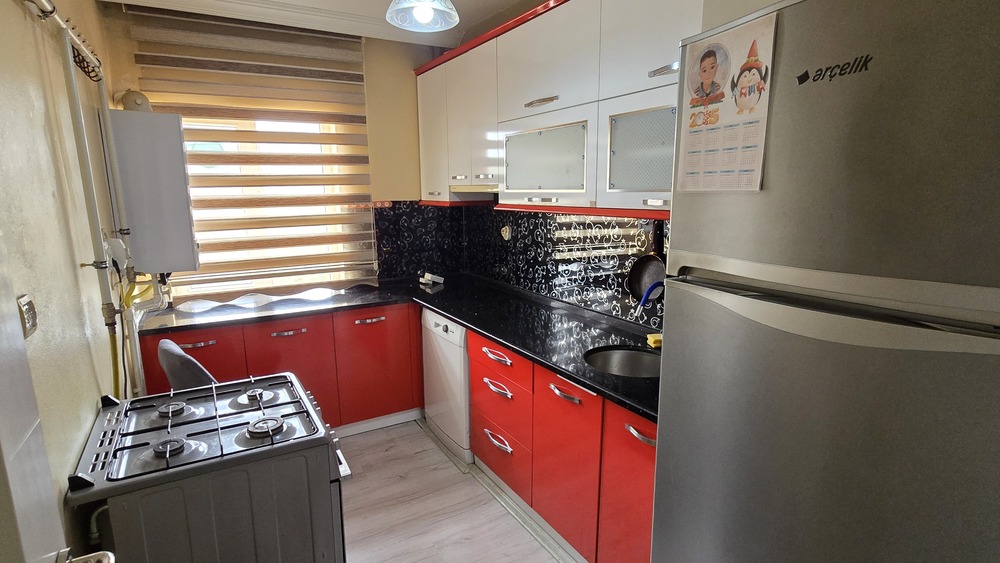 Daire afet konutlarındadır, 2+1 kullanım alanı vardır. Dairenin içerisi resimlerde görüldüğü şekilde yapılıdır. Mutfak dolapları mdf dir.